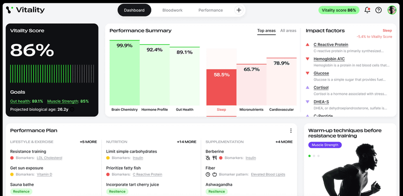 Bloodwork for Peak Performance. Look, feel, and perform at your absolute best. Vitality in your veins Vitality Blueprint plans include everything you need to experience the insight and benefits of performance bloodwork