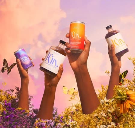 Bloom into your most authentic self. Non-alcoholic Kin Bloom is infused with adaptogens, nootropics, and botanics like Schisandra, Damiana, and L-Theanine to awaken passion, conjure a calmer mind, and unlock heart-opening joy any time of day.